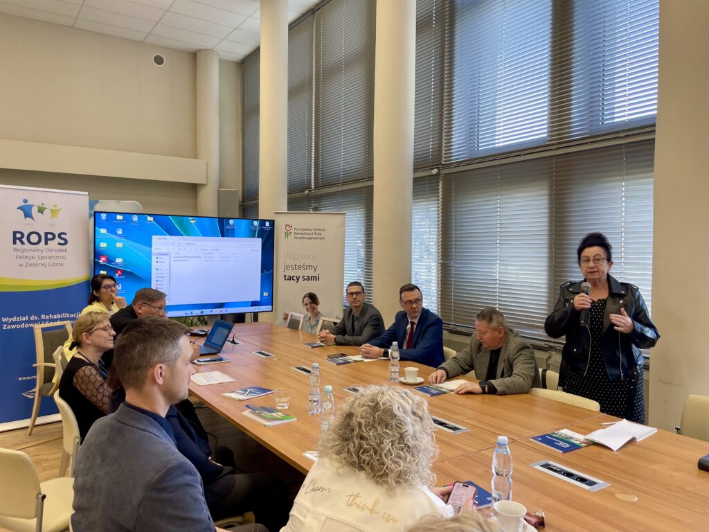 Kolejną prezentację wygłosiła Pani Anna Przybylska – Samodzielny Referent ds. Centrów informacyjno-doradczych dla osób z niepełnosprawnością w Lubuskim Oddziale Państwowego Funduszu Rehabilitacji Osób Niepełnosprawnych. Przedstawiła ona zakres działań realizowanych na rzecz osób starszych i z niepełnosprawnościami. Duże zainteresowanie wzbudziły tematy związane z dofinansowaniem adaptacji łazienek do potrzeb osób z niepełnosprawnościami, możliwością korzystania z wypożyczalni sprzętu rehabilitacyjnego oraz opcją zamiany mieszkań z wyższych na niższe kondygnacje budynków mieszkalnych.