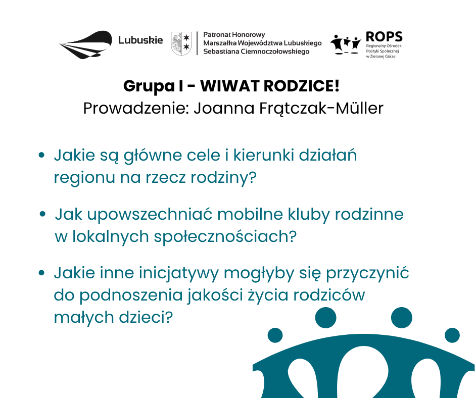 Rozpoczynamy podsumowanie prac warsztatowych, które odbyły się pierwszego dnia Lubuskiego Forum Polityki Społecznej. Grupa I – WIWAT RODZICE!