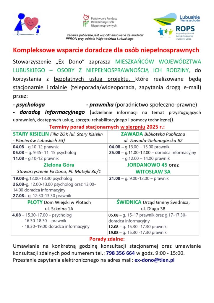 Stowarzyszenie „Ex Dono” zaprasza na bezpłatne porady w ramach projektu „Kompleksowe wsparcie doradcze dla osób niepełnosprawnych”