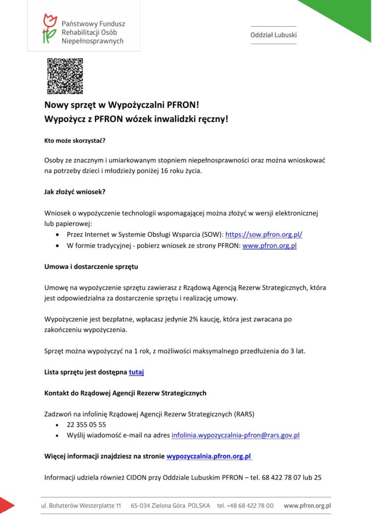Więcej informacji znajdziesz na stronie wypozyczalnia.pfron.org.pl