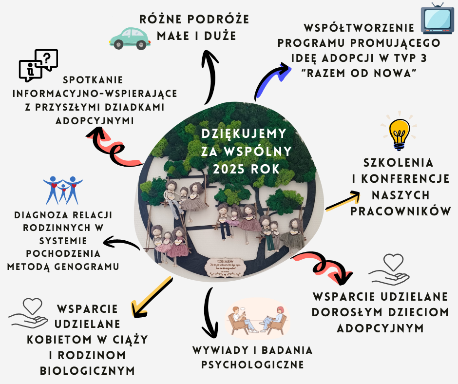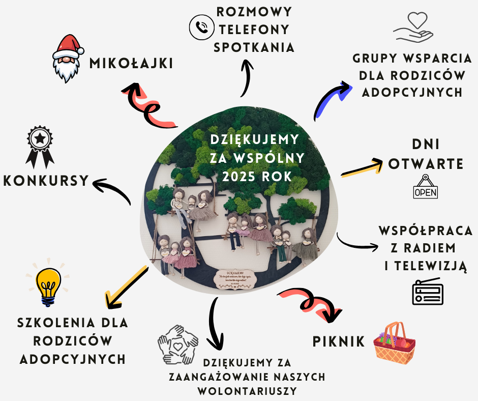 To był czas licznych rozmów i spotkań. Cieszymy się, że i w tym roku tak licznie przybyliście na Piknik dla Rodzin Adopcyjnych i Mikołajkowe Spotkanie Rodzin Adopcyjnych. Serdeczne podziękowania należą się naszym darczyńcom i wolontariuszom, którzy pomogli zorganizować tak duże imprezy. W ubiegłym roku udało nam przeprowadzić szkolenia dla kandydatów na rodziców adopcyjnych, a także grupy wsparcia, dni otwarte i konkursy. 🍀