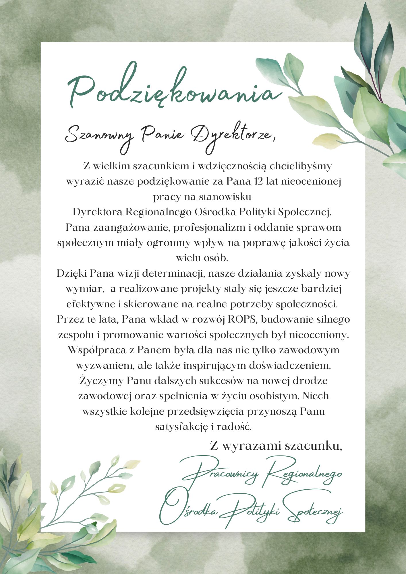 Podziękowania dla Pana Dyrektora