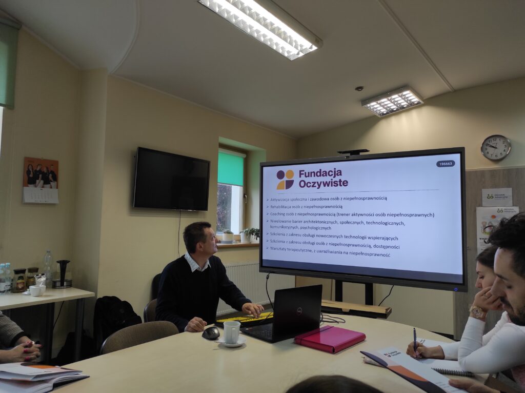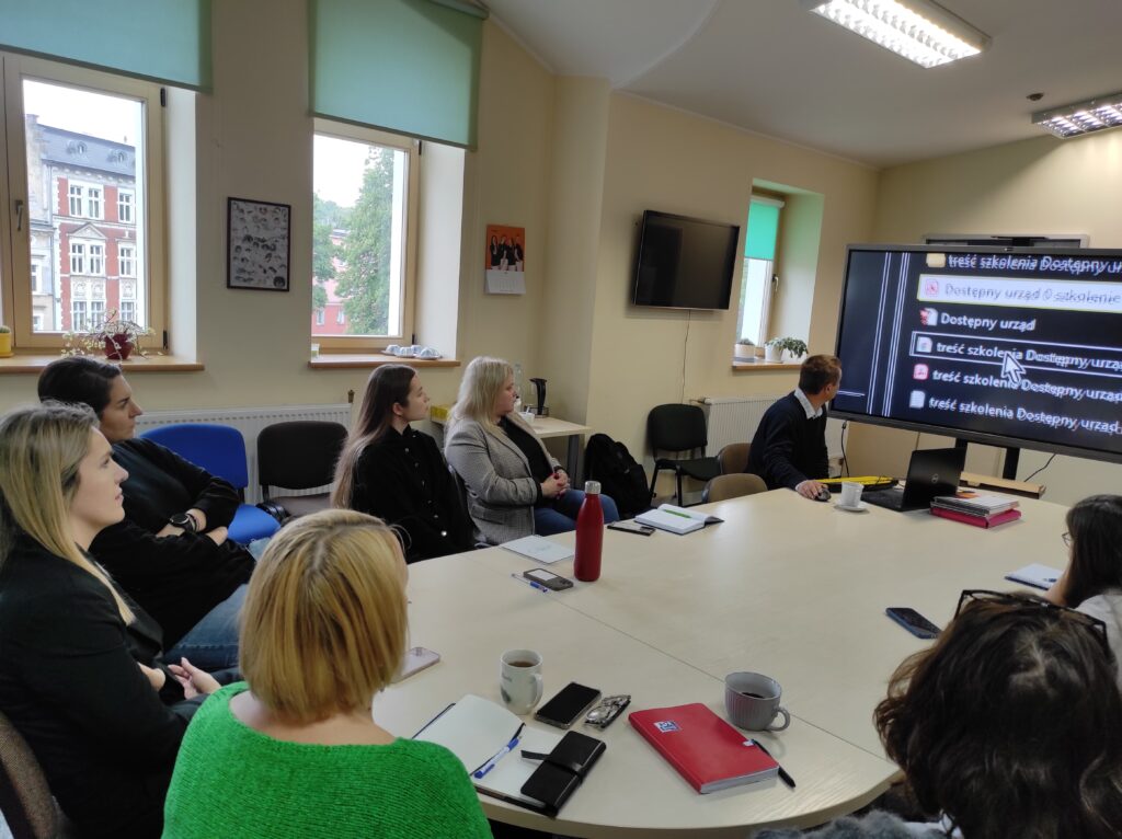 W dniu 20.05.2025 r. w siedzibie Regionalnego Ośrodka Polityki Społecznej w Zielonej Górze odbyło się szkolenie w ramach realizacji zadania publicznego pt. „Dostępny Urząd”, przeprowadzone przez Pana Dariusza Wojciechowskiego – Prezesa Fundacji Oczywiste, Prezesa Zarządu Koła PZN w Zielonej Górze, Członka Zarządu Okręgu Lubuskiego PZN, Wiceprzewodniczącego Miejskiej Społecznej Rady do spraw Osób Niepełnosprawnych w Zielonej Górze, który od 7 lat jest osobą z niepełnosprawnością narządu wzroku w stopniu znacznym. Podczas spotkania zostały omówione różne rodzaje niepełnosprawności, metody i techniki kompensacji deficytów wynikających z niepełnosprawności, technologie wspierające osoby z niepełnosprawnością narządu wzroku, zasady założeń dostępności architektonicznej, informacyjnej, komunikacyjnej i społecznej, reguły przyjaznej obsługi osób z niepełnosprawnością, a także savoir-vivre w kontaktach z osobami z niepełnosprawnością. Część praktyczna szkolenia pozwoliła uczestnikom wcielić się w rolę osoby z niepełnosprawnością narządu wzroku i spojrzeć na Ich potrzeby z innej perspektywy.