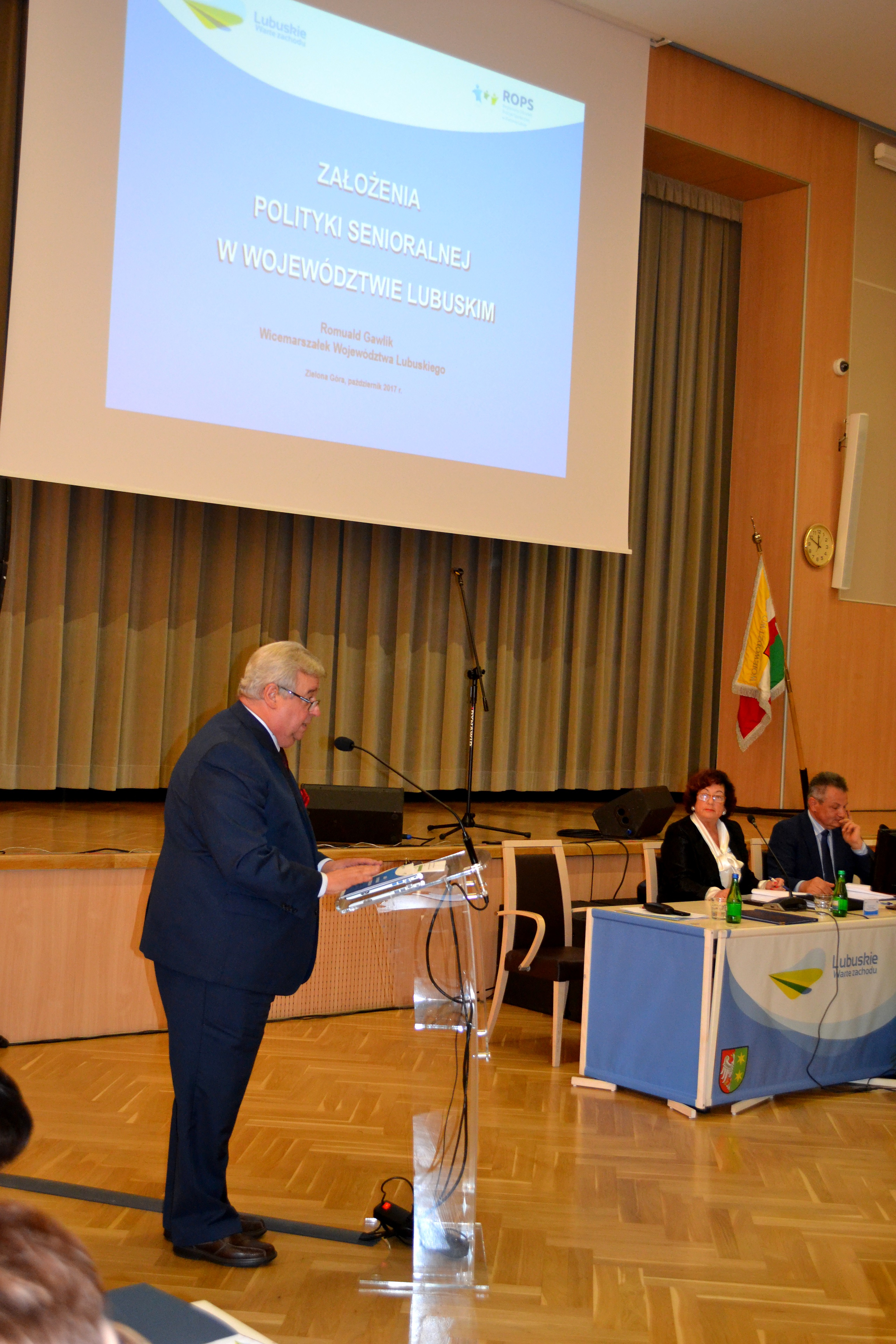 Założenia polityki senioralnej w województwie lubuskim przedstawił wicemarszałek Romuald Gawlik zobacz prezentację, a przewodniczący Czesław Fiedorowicz omówił zadania Sejmiku Województwa Lubuskiego.