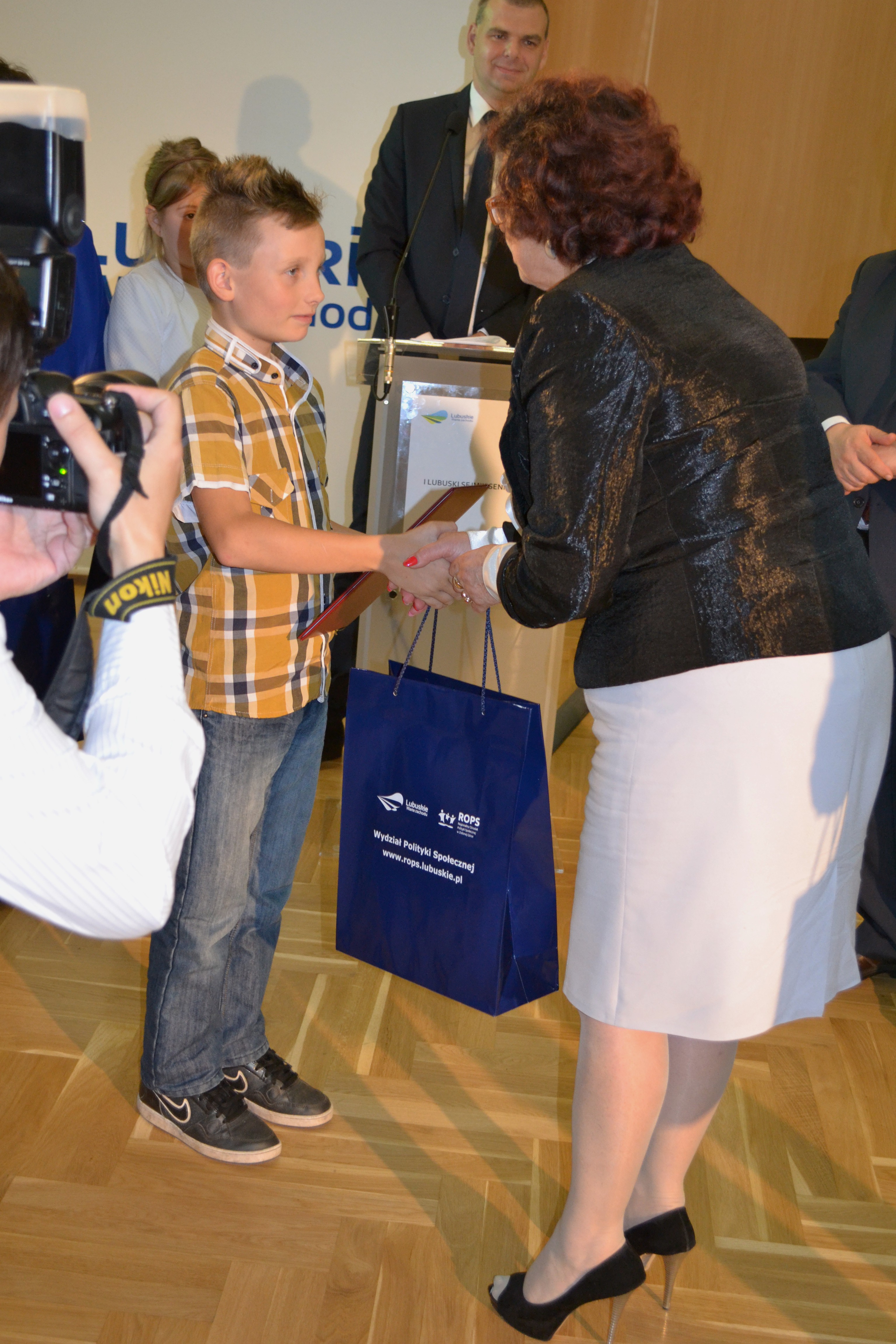 W dalszej części uroczystości zostały wręczone nagrody laureatom konkursu plastycznego pod hasłem „Odkrywamy lubuską krainę z babcią, dziadkiem”, ogłoszonego przez Dyrektora ROPS, skierowanego do dzieci z placówek wsparcia dziennego.