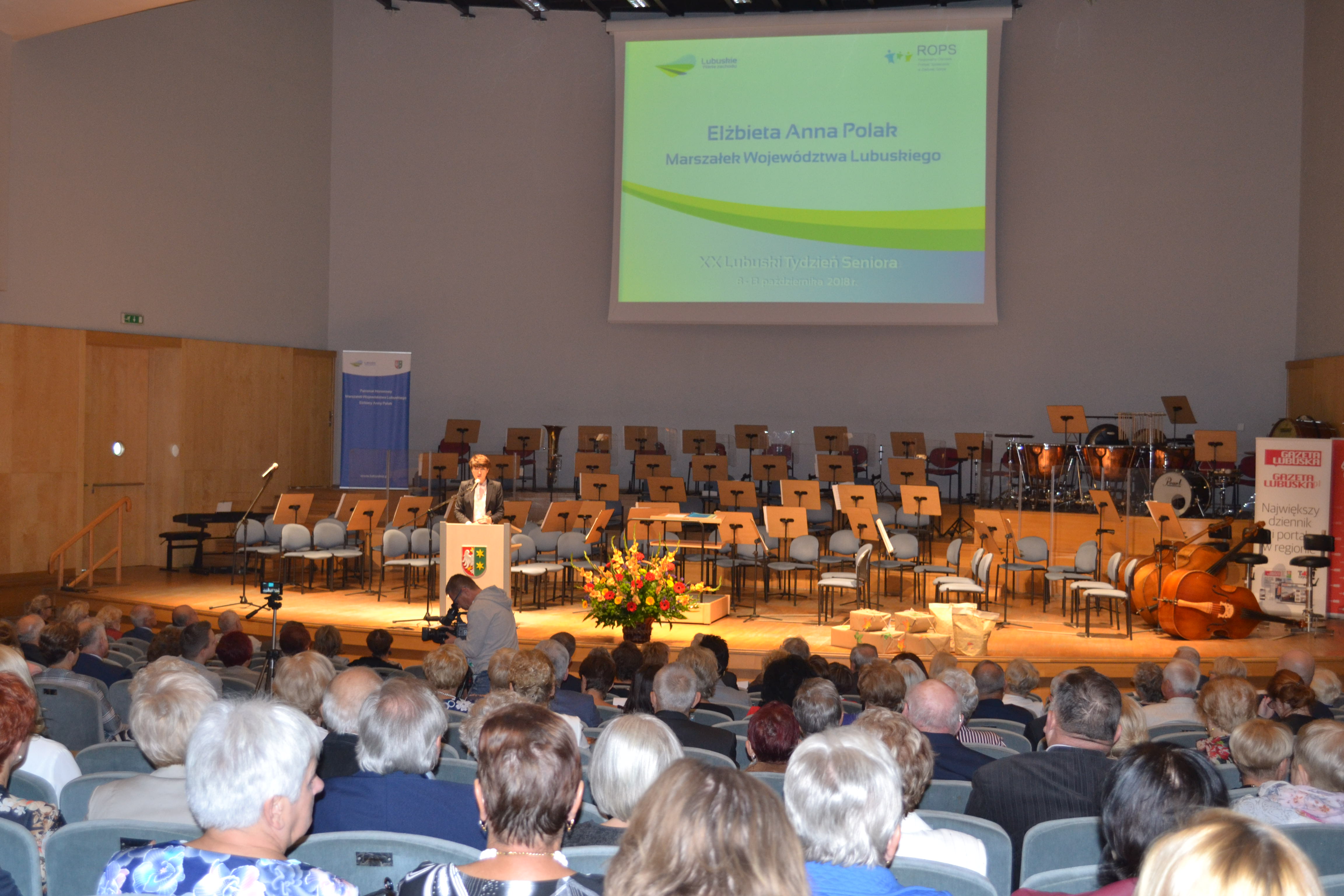 Tegoroczna edycja Lubuskiego Tygodnia Seniora odbyła się w Sali MCM Filharmonii Zielonogórskiej i była szczególna, gdyż jubileuszowa. W dniu 8 października 2018 roku po raz XX spotkaliśmy się podczas wojewódzkiej inauguracji obchodów, które zostały objęte patronatem Pani Elżbiety Anny Polak Marszałka Województwa Lubuskiego, która otworzyła imprezę.