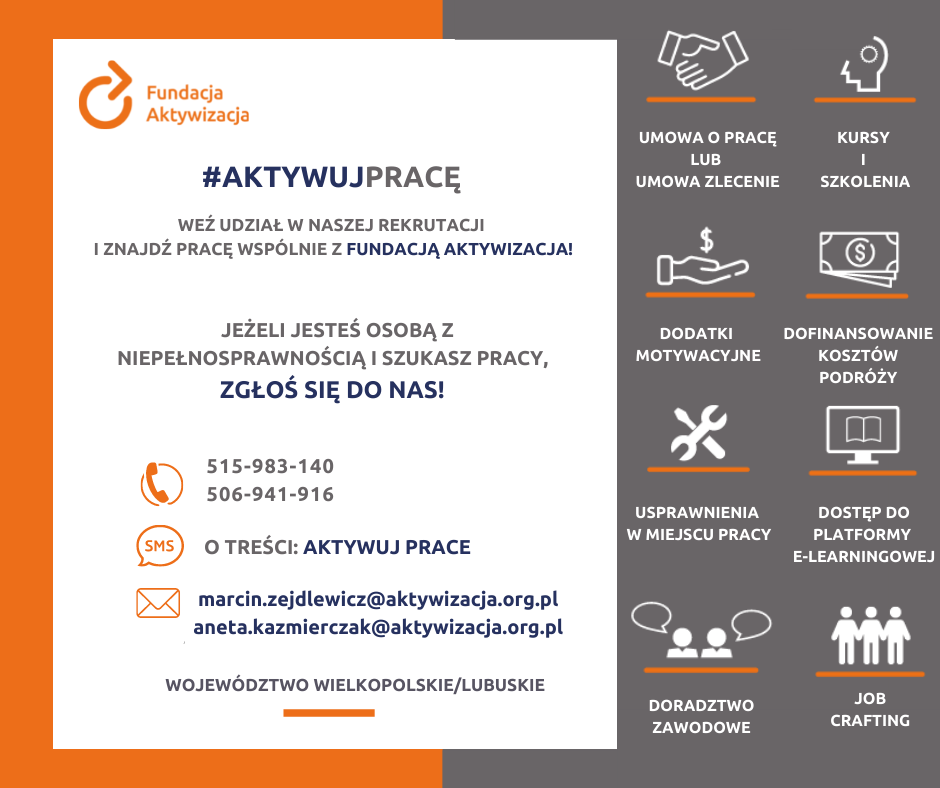 Znajdź pracę razem z Fundacją ,,Aktywizacja”