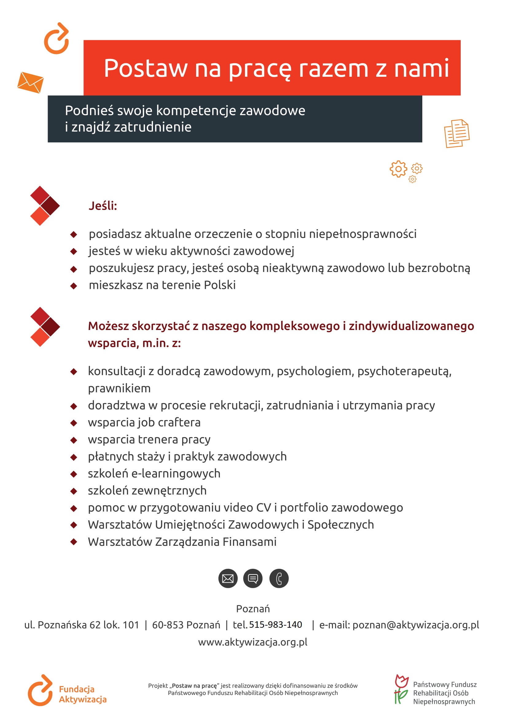 Fundacja Aktywizacja z Oddziałem w Poznaniu zaprasza do rekrutacji – można skorzystać z kompleksowej pomocy i zindywidualizowanego wsparcia w poszukiwaniach na rynku pracy!